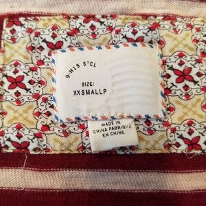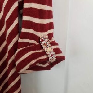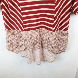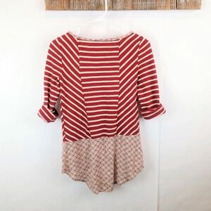 Postmark Anthropologie Fairley Tunic Red Striped Floral Hem Roll Tab Sleeve Top