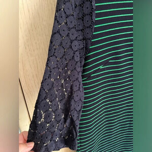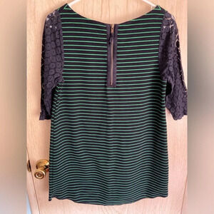 Postmark Anthropologie Women’s Medium Blue Green Striped Cute Top Shirt Tunic.  Lace 3/4 sleeves.  Note: this has some minor pilling and the bottom hem has come down.