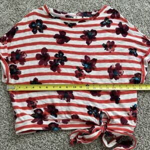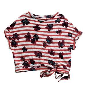 Postmark Anthropologie orange & white floral striped short sleeve top size XS