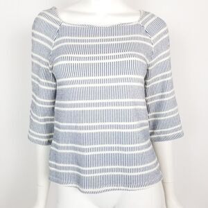Postmark Anthropologie Size XS Blue & White Striped Textured Flare Sleeve Top
