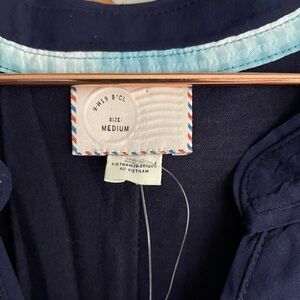 In new condition with no visible flaws. Blue tie dye front and solid navy back.