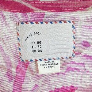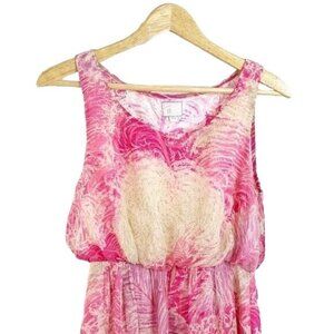 Postmark Rosy Plumes Dress Pink Size 00 Tan Lined Sleeveless Silk Anthropologie
