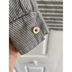 - Flaws: No Holes, stains, or tears: One Button has been replaced on the sleeve - but there is an additional button replacement on the inside