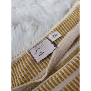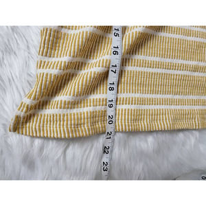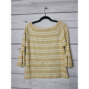 Postmark Anthropolgie Womens Blouse Beige White Stripe 3/4 Sleeve Square Neck Ribbed M