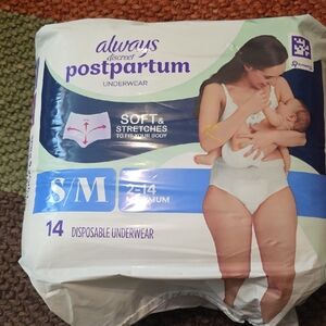Always Discreet postpartum underwear. Soft and stretchy. Size S/M. Pack of 14.