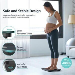 🧿High Accurate Scale - equipped with 4 high precision sensors and 4 good sensitive electrodes, with advanced technology to ensure your accurate readings with division at 0.2lb/100g, up to maximum capacity 400lb/180kg in 0.1 lb/0.05kg increments. With low power / overload indication, step-on technology and 2xAAA batteries included.