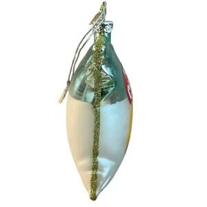 After molten glass is mouth-blown into meticulously carved molds, each ornament is entirely hand-painted, beaded, glued and glittered in a series of labor-intensive steps to achieve this gorgeous unique piece.