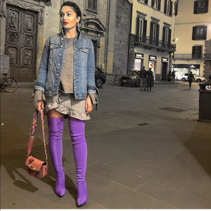 These boots are made for walkin’........ From the silky stretch material to the vibrant bold purple color, these boots and everything!!! (Measurements taken from size 9)