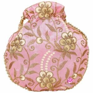 Potli Bag Peach Indian Ethnic Handbag Embroidered Ladies Floral :')
