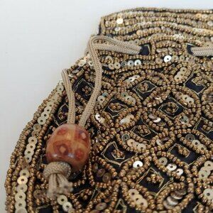 Potli Pouch Drawstring Lined Bag Purse Satchel Sequins Black Gold