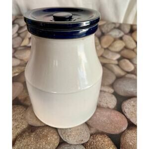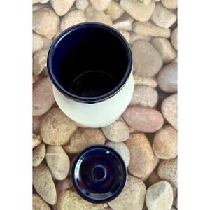 Potpourri Blue by Denby of England stoneware. Vintage White and navy blue jar. excellent condition. Jar with lid. Approx. 7.5” tall. Dishwasher/freezer/oven proof.