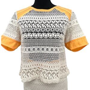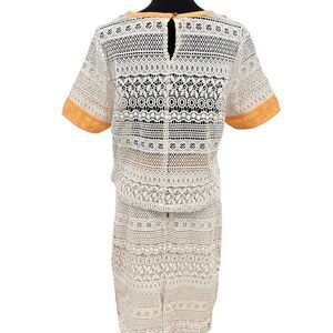 Potter's Pot Creme Crochet Lace Cropped Boxy Top Lace Skirt Boho Large