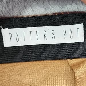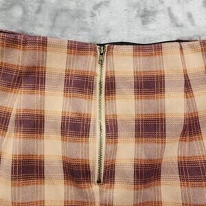 Potter's Pot Skirt Womens L Tan Plaid Faux Suede Mini Back Zip Stretch Preppy Academia