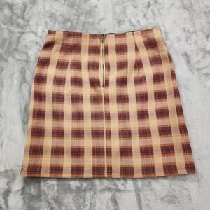 Potter's Pot Skirt Womens L Tan Plaid Faux Suede Mini Back Zip Stretch Preppy
