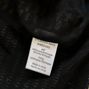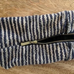 Navy and cream stripped knit-textured jacket, gold studded shoulder detail, zippered cuffs. Worn once. A great upgrade to your fall blazer!
