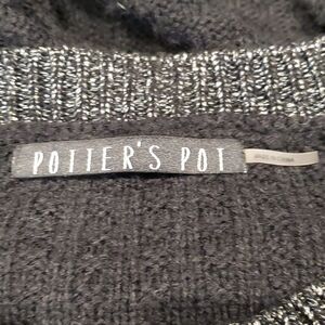 Potter's Pot Patchwork Open Weave Sweater Metallic Trim Sz S