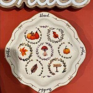 Autumn 🍂 Harvest Set. Includes: Potter’s Studio ceramic serving dish; Eccolo wood ‘Grace’ sign; Kay Dee Designs 2-Pk Kitchen Dual Purpose Towels; featuring a delightful mix of red, orange, and green hues, these towels bring a festive touch to your home; and Town Street Arts harvest themed note pad with orange pen. This set is certain to enhance your home decor and bring seasonal charm to your kitchen.
