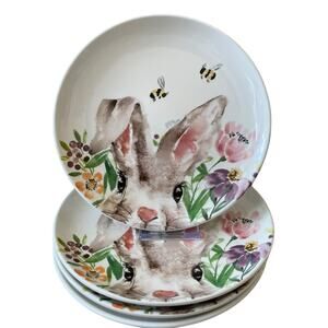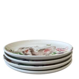 Potter's Studio Bunny Rabbit Salad Plates 9in Bumblebee Spring Floral Set 4 NEW