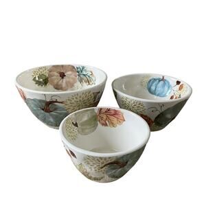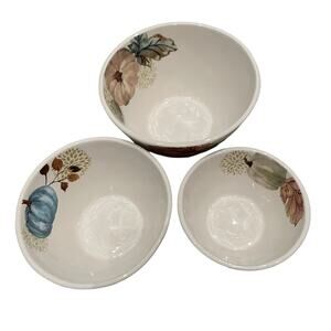 Potter's Studio Ceramic Nesting Bowl Set of 3 Fall Harvest Pumpkins New