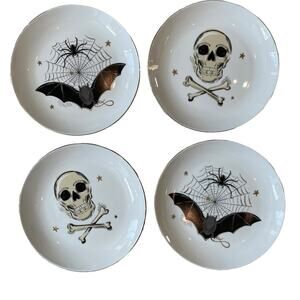 Potter's Studio Halloween Appetizer Plates 6in Bats & Skulls Set of 4 Spooky