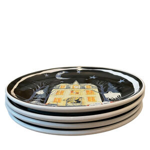 Potter's Studio Halloween HAUNTED HOUSE Salad Plates Set of 4 Witch Ghost New
