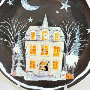Potter's Studio Halloween Haunted HouseWitch Ghost Black Salad Plates Set 4 New