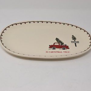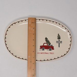 Potters Studio O Christmas Tree Farm Serving Dish Red Truck Holidays Party Table