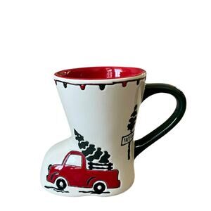 Potter's Studio Red Truck w Christmas Trees Boot-Shaped Coffee Mug 12oz Set of 2