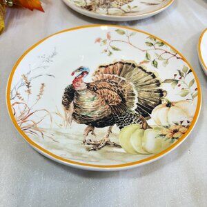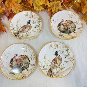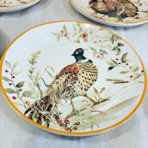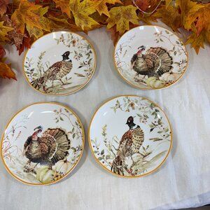 Potters Studio Woodland Turkey & Pheasant Salad Plates Set of 4 Thanksgiving New