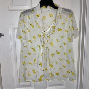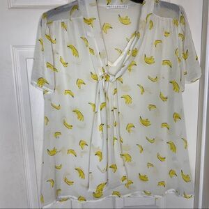 Size M Short sleeve Sheer Tie front Banana print Length 25” Bust 19” flat