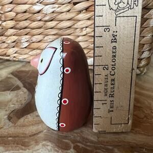 A cute decorative vintage owl in a pottery style. Shows date on bottom when purchased written in pen. No chips or cracks. Almost 3 inches tall. Please refer to all photos for current condition and measurements.