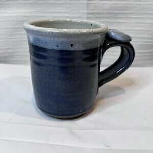 Pottery Art Coffee Mug Blue Drip Glaze "My Way or Die” with thumb placement