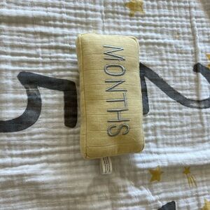 This adorable sun Pottery Barn milestone blanket is 100% Organic Cotton. They are completely out of stock and don’t sell this anywhere right now! This has been one of the cutest monthly milestone markers I’ve seen, and it has its own separate “months” pillow. Oversized, so baby can fit all the way through a year! New condition, and so easy to take care of!