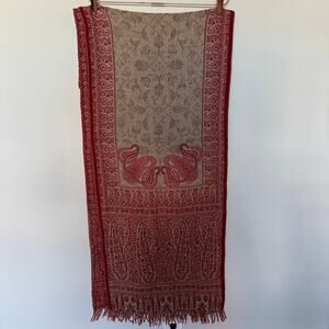 Pottery Barn 100% Wool Table Runner 18x108" Red Floral Paisley Fringe Home