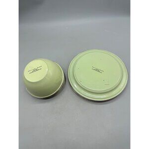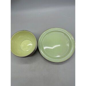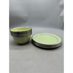 Pottery Barn 12 Piece Dinnerware Set Green Plates Bowls Enamelware metal READ