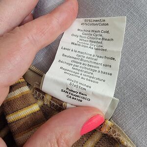 Pottery Barn two 20x20 Inch Throw Pillow Covers Linen Cotton Blend Neutral Striped in brown tones, good condition. Zip closures. Herringbone weave pattern and natural imperfections in fabric waeve that are not defects but properties of this kind of fabric as shown in photos. See photos for actual measurements, fabric will stretch to fit 20x20 Inch insert.
