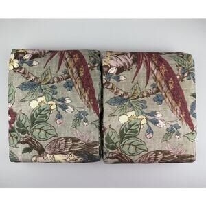 Pottery Barn 2-in-1 Pole Top Curtains PHEASANT FLORAL 50x84 Set of 2 Linen Blend