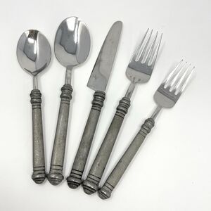 Pottery Barn 70% PEWTER Banded Handle & 18/8 Stainless Teaspoon 7 3/8”