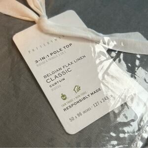Pottery Barn Belgian Flax Linen Curtain Cotton Lining 50 x 96 Light Charcoal NEW