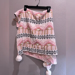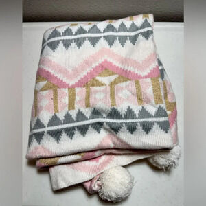 Pottery Barn Kids Pink Emily Meritt Blanket Girls Soft Cozy Pom Pom