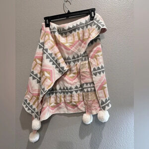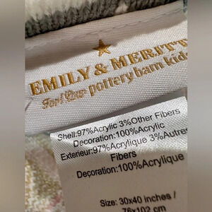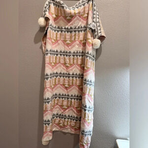 Pottery Barn Blanket Kids Pink Emily Meritt Girls Soft Cozy Pom Pom