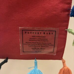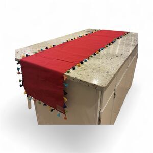 Pottery Barn Boho Colorful Table Runner Red Tassels 16 x 108” New Patio Party