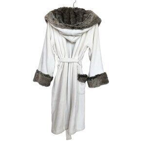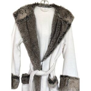 Pottery Barn Brown Ombre Faux Fur Robe Bathrobe Size Medium Brown White Hooded