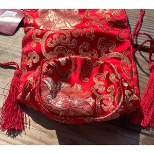 Pottery Barn Chinese Wine/Gift Bag With Tassels Red & Gold Chinoise Drawstring