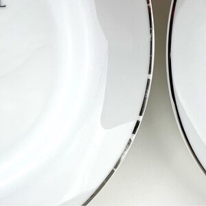 There are no chips or cracks but one plate’s silver rim has some scratches. Please take time to view all photos carefully.
