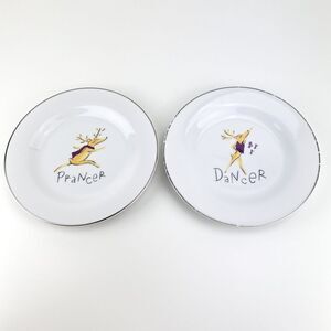 Pottery Barn Christmas Santa's Reindeer Porcelain Salad Plate Dancer, Prancer.