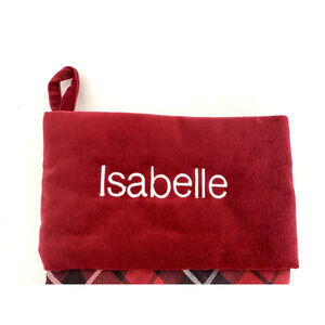 Pottery Barn Christmas Stocking Personalized ISABELLE Red Cotton Linen Plaid