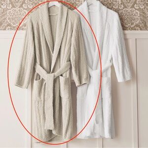 Includes 2 spacious pockets, wide lapel and waist belt.