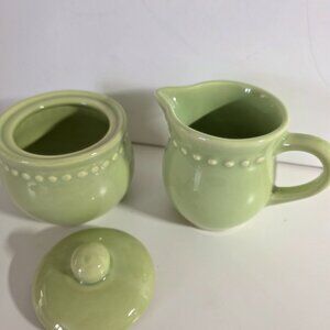 Pottery Barn Cream and Sugar Bowl with lid Discontinued pattern Emma Light Green