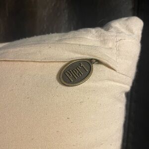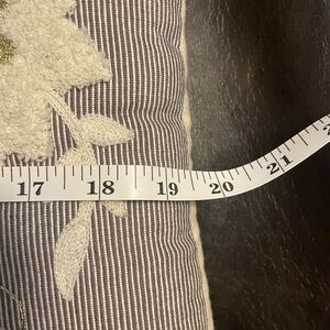 The Pottery Barn Crewel Floral Striped Lumbar Pillow is a charming addition to any room, featuring a navy blue and cream color scheme with intricate embroidered floral details. This decorative pillow cover showcases a cottagecore style with bohemian and beach-inspired themes, perfect for adding a touch of nature to your bedroom, living room, or guestroom. The medium-sized, rectangular pillow is adorned with a beautiful floral pattern, making it a lovely choice for those who appreciate floral and garden-inspired decor.